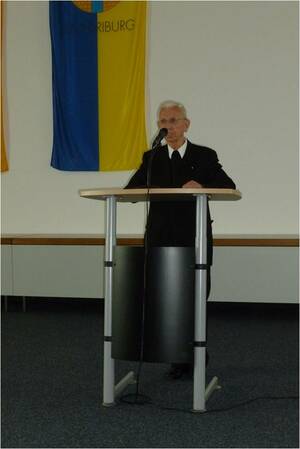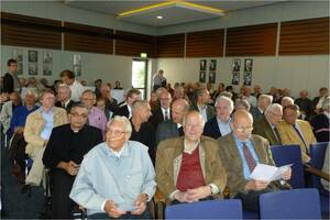 Um 11.00 Uhr trafen sich die angereisten Gäste und Freunde von St. Klemens zunächst im großen Sitzungssaal des Driburger Rathauses, um eine Ausstellung zur Geschichte des Studienheimes zu eröffnen. Nach einem Sektempfang begrüßte Bürgermeister Burkhard Deppe alle Anwesenden und wies auf die Bedeutung hin, die das Studienheim in früheren Jahrzehnten für die Kurstadt Bad Driburg hatte. Dann ergriff Prälat Bruno Kresing aus Paderborn das Wort. Als ehemaliger Generalvikar des Erzbistums hatte er von 1974 bis 2002 als Vorsitzender des Clemens-Hofbauer-Hilfswerkes für Priesterspätberufe e.V. die Geschicke des Studienheims maßgeblich geprägt. Er würdigte die Leistung von StD iR Peter Möhring, der mit großer Sachkenntnis und viel Liebe zum Detail die Ausstellung zur Geschichte von St. Klemens konzeptioniert hatte. Schließlich führte Peter Möhring selbst in die Ausstellung ein, die bei allen Anwesenden auf großes Interesse stieß. Aufgrund des großen Zuspruchs wurde die Ausstellung über die ursprünglich geplanten 4 Wochen hinaus um zwei Wochen verlängert bis Ende Oktober 2012.