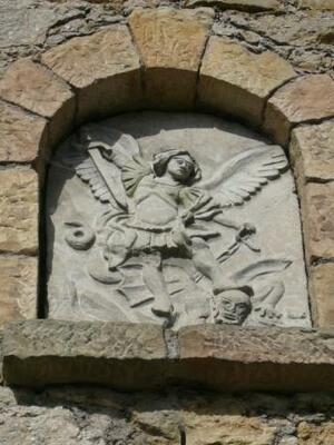 Relief "Erzengel Michael tötet den Drachen" über dem Portal der Marienkapelle