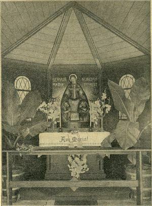 "An dieser Stelle erbauten wir im Jahre 1932 eine Holzkapelle zu Ehren der Gottesmutter. Als im Jahre 1941 das Studienheim St. Klemens zwangsweise enteignet wurde, versprach ich im Falle der Rückkehr, an dieser Stelle eine Steinkapelle zu bauen...Hier beteten wir, als wir im ersten Kriegsjahr zur Front mußten.Hier wurde gebetet, als das Heim gewaltsam seiner Bestimmung entzogen wurde.Hier beteten die ersten Heimkehrer, die das Werk des Wiederaufbaues in ihre Hände nahmen.Hier wurde gebetet, als in den Nachkriegsjahren so mancherlei Not die Kraft des Wiederaufbaues zu lähmen drohte.Nun also ist eine neue, eine schönere Kapelle erstanden.Es ist eine tröstliche Gewißheit, daß so das Lob Mariens an dieser Stelle nicht abreißen wird und daß aus den stillen Gebeten vor dem Bild unserer Lieben Frau sicher reiche Gnaden hinab ins Tal und zu den hoffenden Menschen getragen werden."