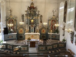 Der Rückweg nach Bad Driburg führte die Gruppe zunächst nach Kleinenberg. In der dortigen Marienkapelle "Auxiliatrix de monte modico", einem der ältesten Wallfahrtsorte Westfalens, feierte Altklementiner Johannes Baptist Seves (Abitur 1963) mit den anwesenden Altklementinern und einigen Gläubigen aus Kleinenberg einen sehr zu Herzen gehenden Gottesdienst.