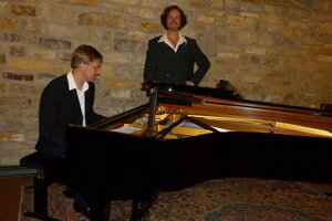 Die Gruppe Thauern & Trio (hier v.l. Markus Maurer, Georg Thauern) erfrischt mit Liedern im Stil der 1920er Jahre, die textlich abgestimmt sind auf die Bild- und Redebeiträge der Festveranstaltung.