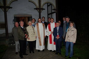 v.l.: Norbert Cruse (stellv. Vors. Kirchenvorstand Belecke), Josef Friederizi, Elke Bertling (Ortsvorsteherin Belecke), Pfr. Gudermann, Rektor Dr. Hohmann, Ulrich Schulz (Vorsitzender Förderverein St. Klemens e.V.), August Herbst (Vorstand Förderverein St. Klemens e.V.), Anja Werthmann (Pfarrgemeinderat Belecke), im Hintergrund 4 Klementiner und Altklementiner Werner Hardeck, Foto: Michael Sprenger